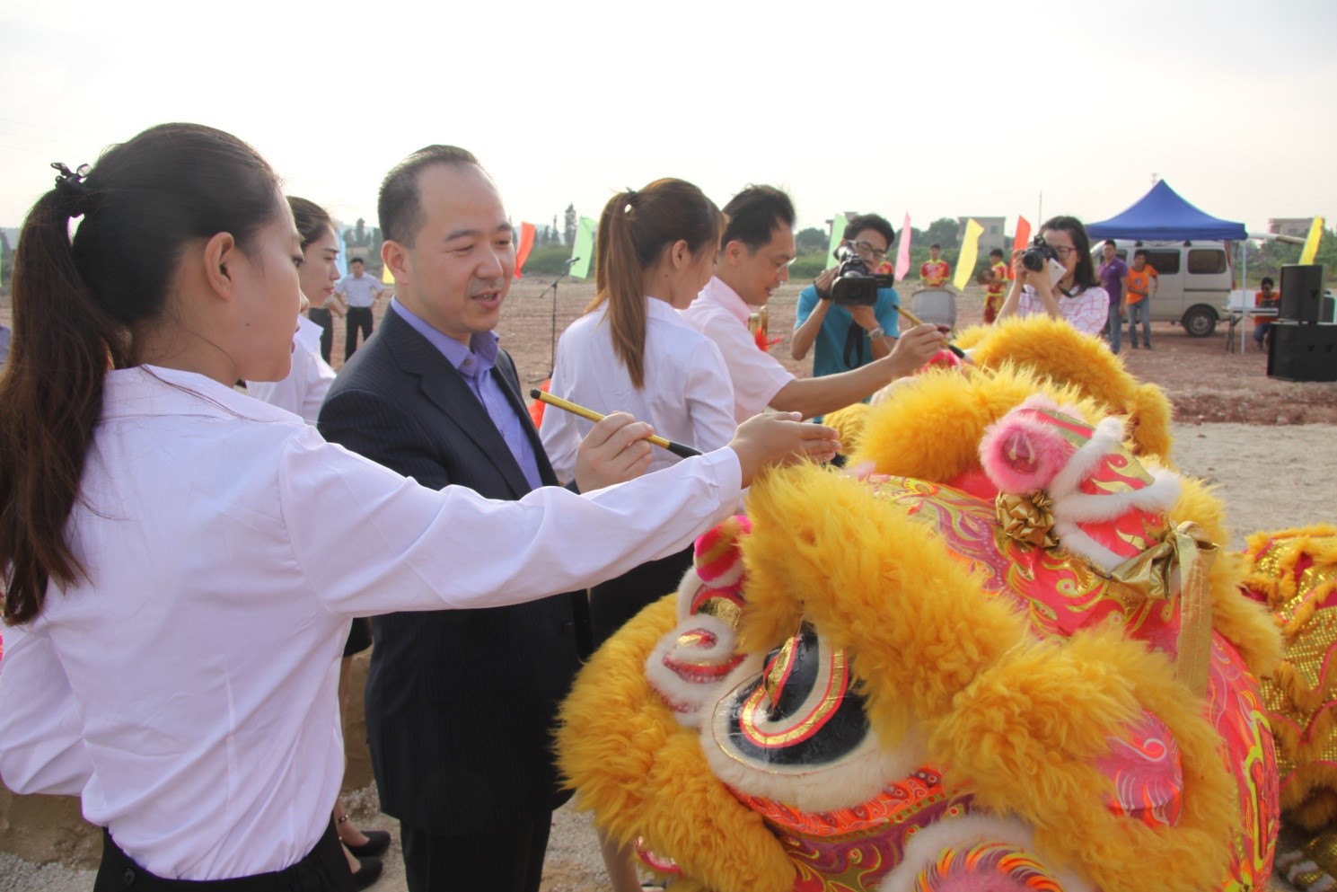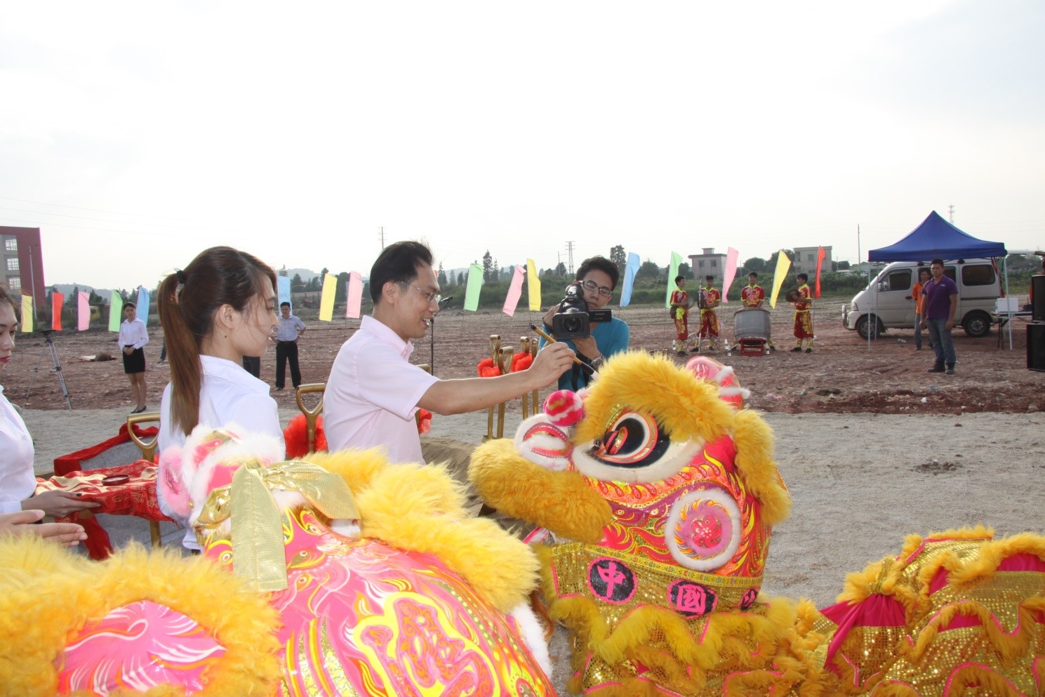 最后,在一片祥和喜庆的氛围下,大家同擎金锹,扬土培基。奠基仪式在大家的鼓掌声中,圆满的结束!